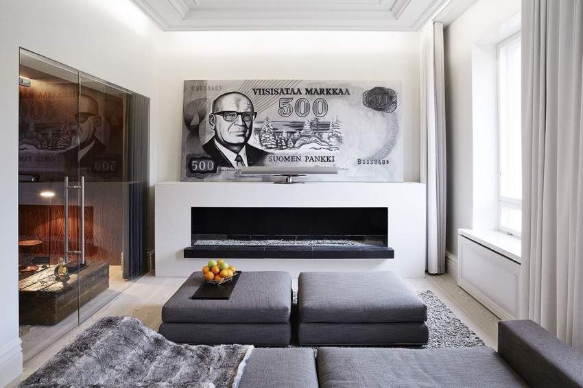 Ce lieu qui accueillait autrefois une banque a été complètement transformé en appartement contemporain par le cabinet d’architecte SAUKKONEN pour un jeune couple.