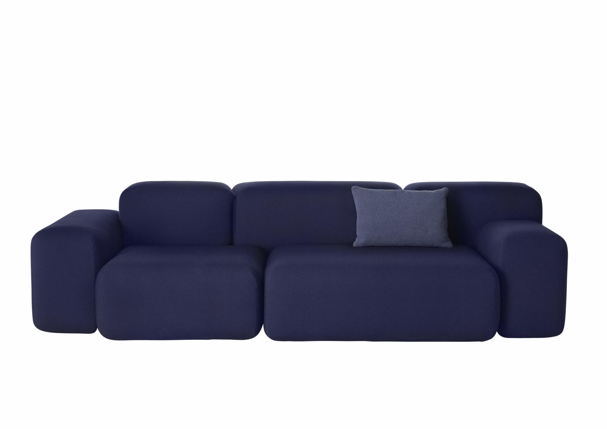La Série Soft Blocks propose un canapé 3 places, un canapé 2 places et un pouf, le tout proposé en deux couleurs : bleu ou gris. Le canapé est composé de blocs souples de différentes tailles qui sont placés de manière asymétrique lui donnant une personnalité ludique et unique.