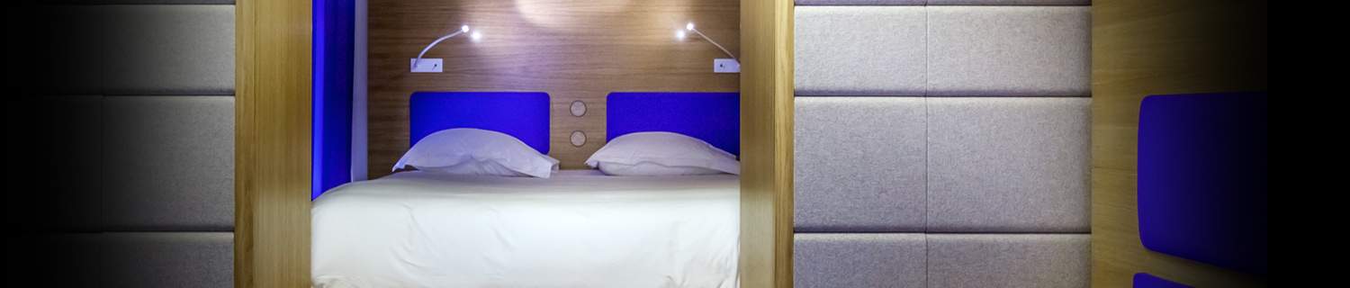Son equipe decline à tour de bras droit…et gauche ce qu’elle a vu à Milan et ailleurs. Le corian devient bois, les cuisines slovenes deviennent des chambres en bois… Cela s’appèle faire feu de tout bois, pour rester trendy… Voila un hotel cabine… ce qui permet de mener le client en bateau des vagues du bar ( bonjour la femme de menage)jusqu’à sa cabinette …